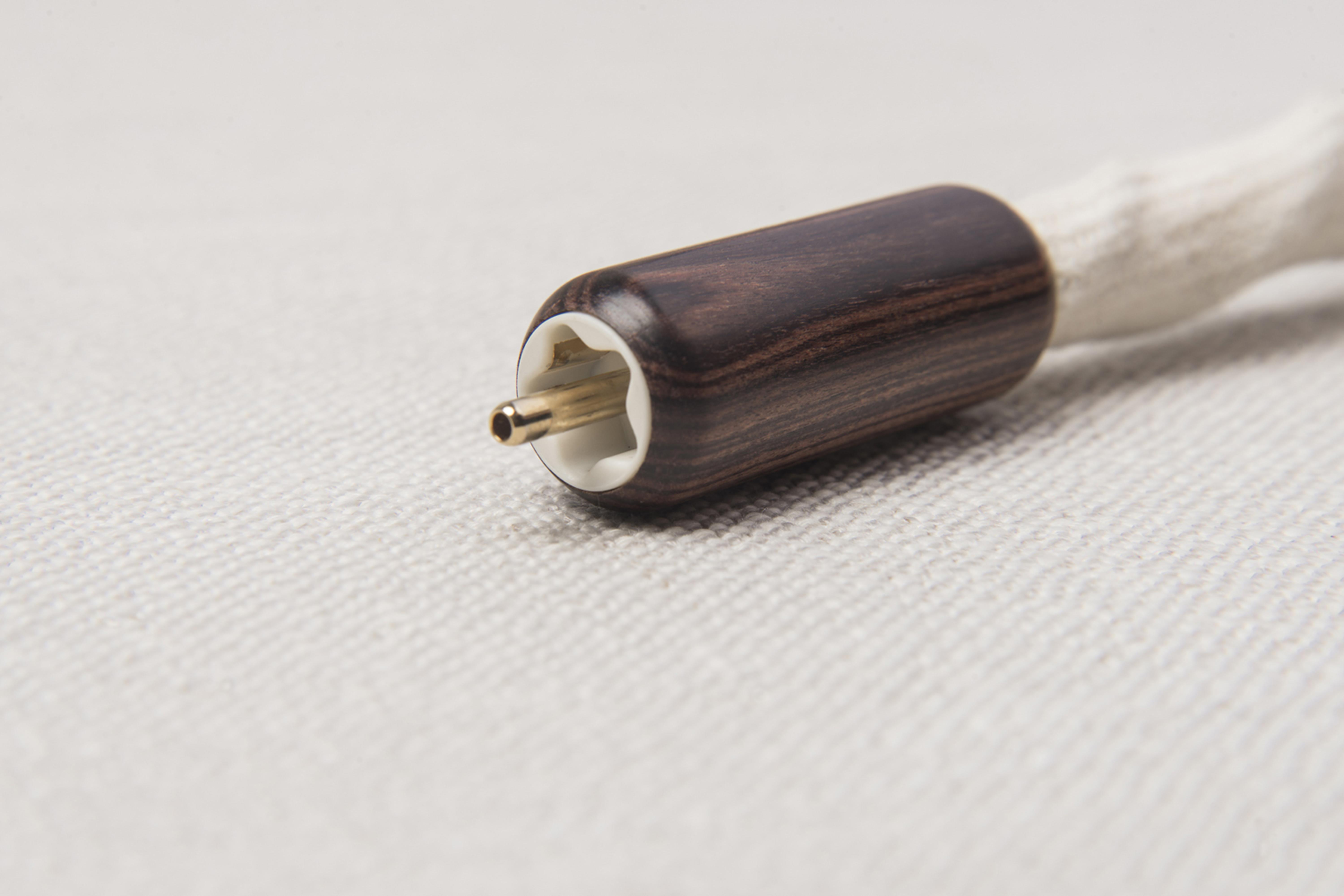 A madeira escolhida para o conector se chama Jacarandá, obtida comorigem controlada, é uma madeira de rara beleza conhecida mundialmente pelo nome (BrazilianRosewood ), é uma madeira veneradapor Luthiers de todo o mundo por suas excelentes características sonoras.